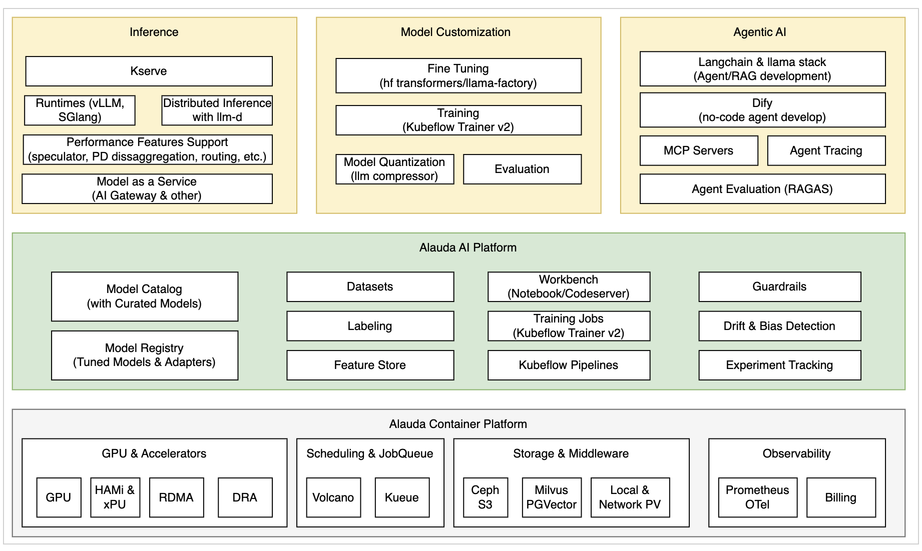 | Workbench (Alauda AI Workbench) | Web-based interface for managing AI projects, including model training and inference | Proprietary | Commercial |